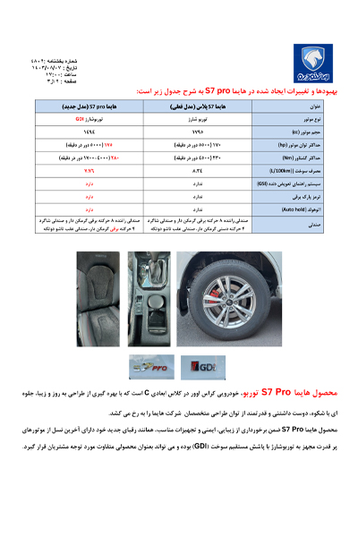 اطلاعیه شماره 4802 - معرفي محصول ارتقاءيافته ايران خودرو هايما S7 Pro